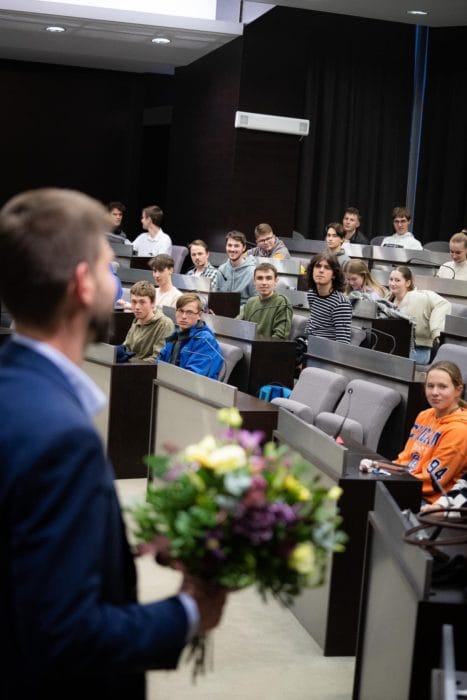 5. decembra 2023 prišiel medzi študentov aj líder hnutia Progresívne Slovensko Michal Šimečka. Diskutoval so študentami Gymnázia Jána Hollého v Trnave. Na diskusiu si síce nezvolil priestory školy, ale rovno zasadaciu miestnosť mestského zastupiteľstva na Trnavskej radnici.